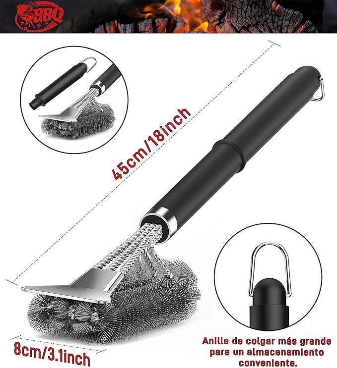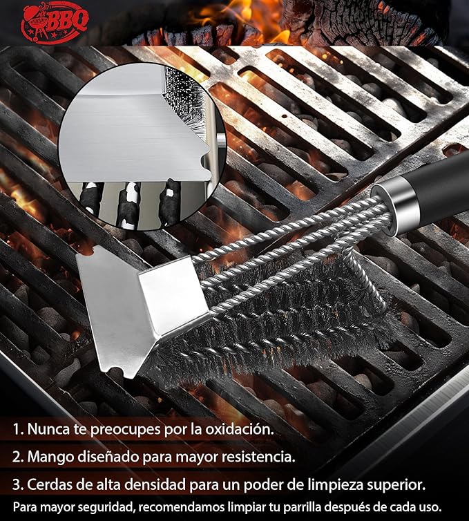 Cepillo de Barbacoa 3 en 1 – El guardián del fuego limpio