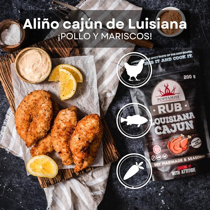 - Sabor auténtico Cajun: mezcla equilibrada de picante, ahumado y hierbas del sur.